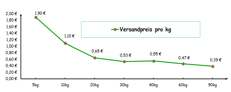 Der Versandpreis Inland wird günstiger pro kg, was besonders bei den Sortimenten günstig ist.